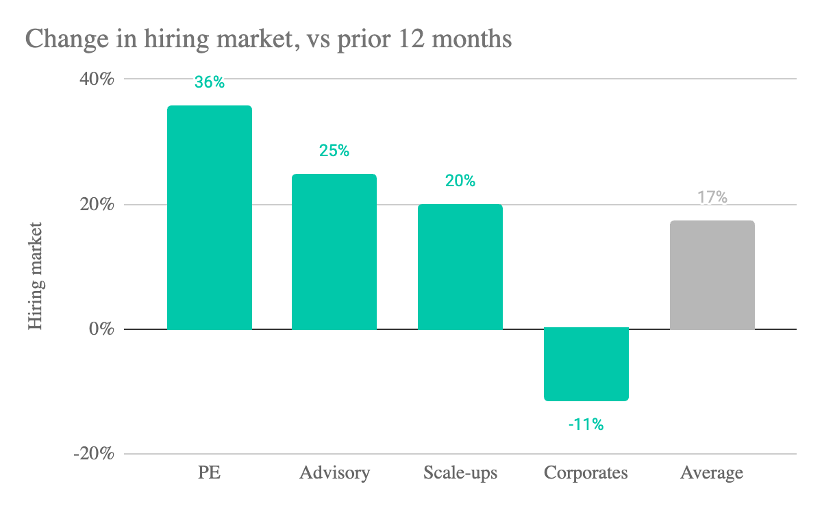 However, the numbers told a different story. Hiring demand has risen by 21 percentage points in large firms, and by a more modest but still significant 9 percentage points in boutiques. In other words, demand is not confined to specialists, it’s happening across the board.